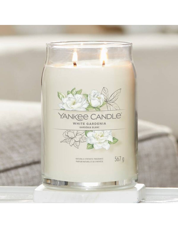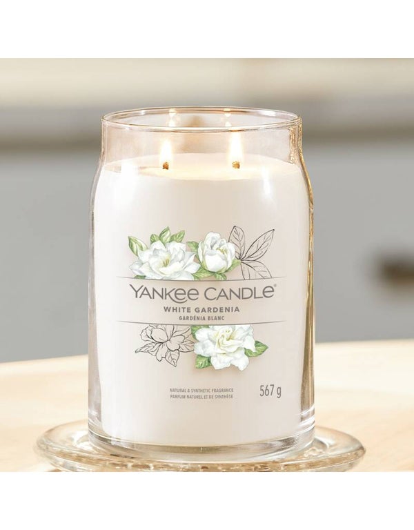 Yankee Candle White Gardenia Signature Large Jar. Elegante bloemengeur van witte gardenia. Luxe geurkaars ±60-90 uur. Verkrijgbaar bij B-home Maldegem.