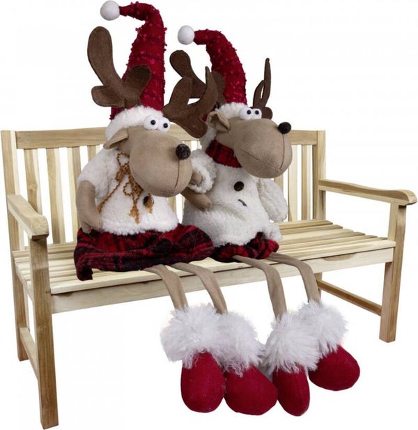 Koppel Eland 30cm (40cm) - decoratief figuur rendier zittend - Set 2 stuks