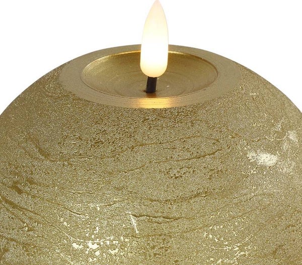 Countryfield LED kaars/bolkaars goud met warm wit licht. Deze LED kaars/stompkaars is ongeveer 8 cm breed en 9,5 cm hoog. Het goudkleurige design geeft een rustieke finish. Inclusief 6/8 uur timer. Voeding: 2 AA batterijen (niet inbegrepen). Materiaal: wax.