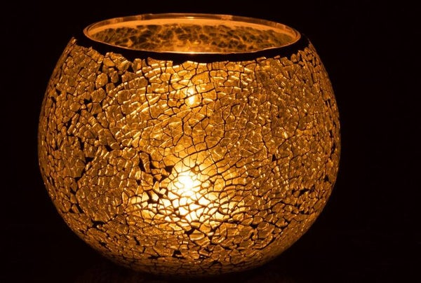 - J-Line Theelichthouder Mozaiek Rond Glas Geel Small L10xB10xH8