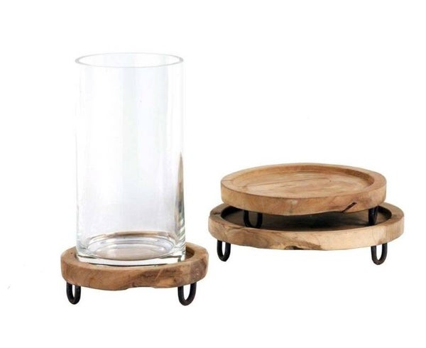 Vaas / Windlicht - Hurricanlight Teak - inclusief stevige vaas