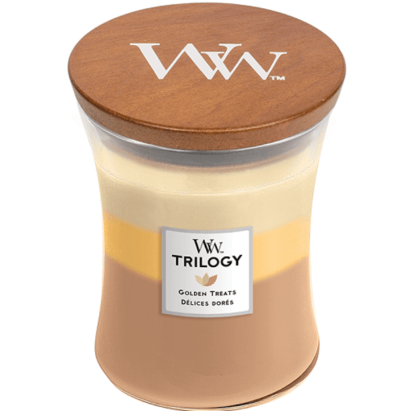 Golden Treats WoodWick Trilogy Medium Geurkaars