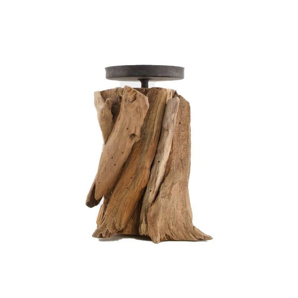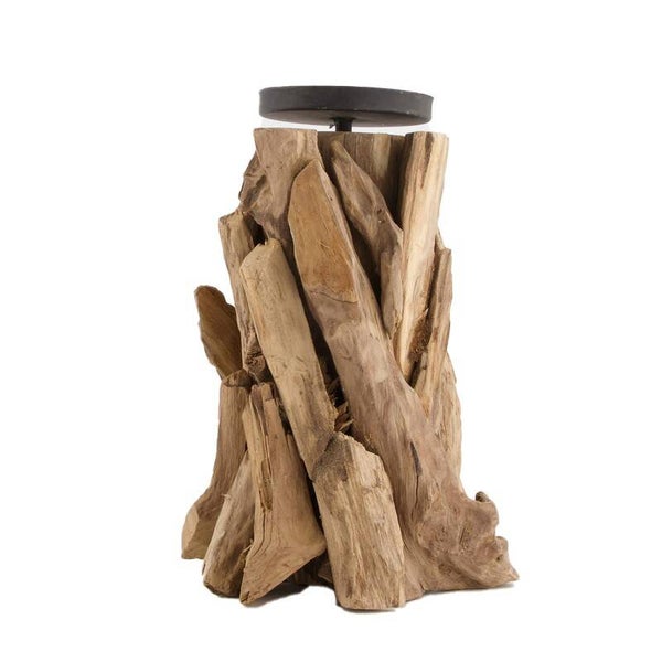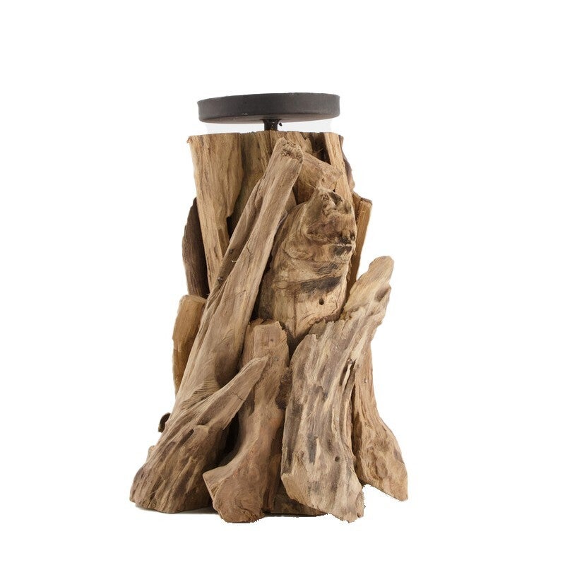 Kaarsenhouder robuust Large driftwood 17x17x23.5cm - Naturel
