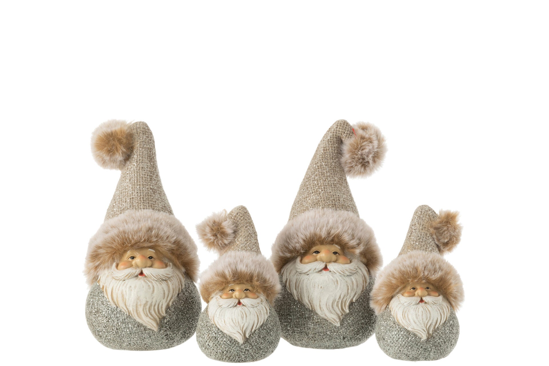 Breng de feestdagen tot leven met onze betoverende J-Line Kerstmannen, nu verkrijgbaar bij B-home Decoratie en Interieur in Maldegem. Dit assortiment van twee kleine kerstmannen in poly-grijs en bruin, afgewerkt met luxe vacht en glitter, zal ongetwijfeld een glimlach op je gezicht toveren.