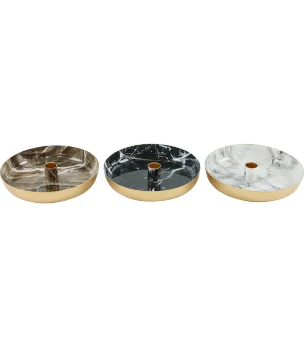Kandelaar voor Diner Kaarsen - Kaarshouder - 18x3cm - Marmerlook wit - zwart of Bruin - 1 stuk