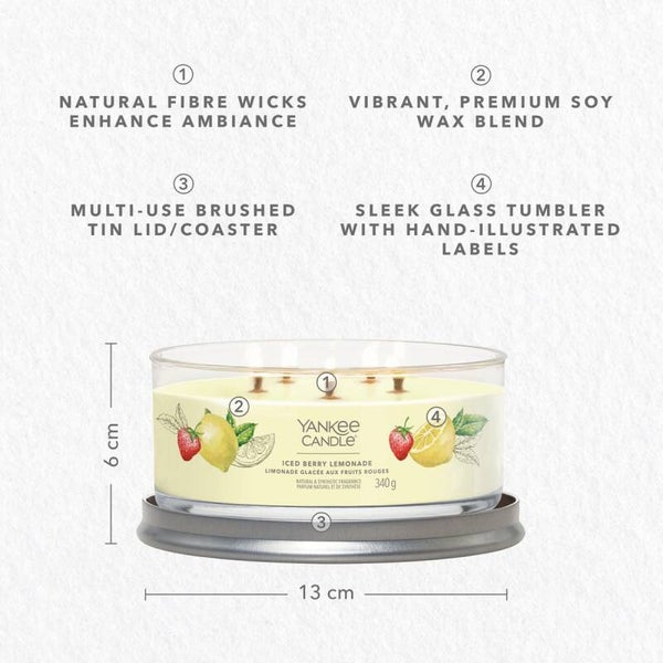 Yankee Candle Iced Berry Lemonade Large Jar. Zoete mix van bessen en citroen. Brandduur ca. 90 uur, met twee lonten. Verkrijgbaar bij B-home Maldegem.