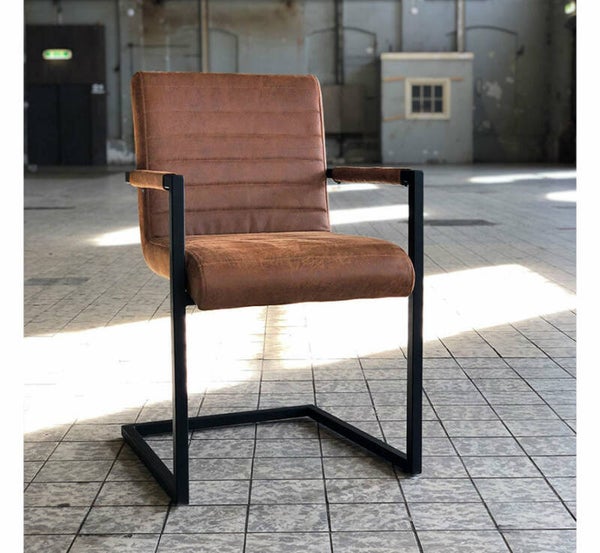 De industriële eetkamerstoel Block is verkrijgbaar in de kleuren: cognac, bruin, antraciet en olijfgroen