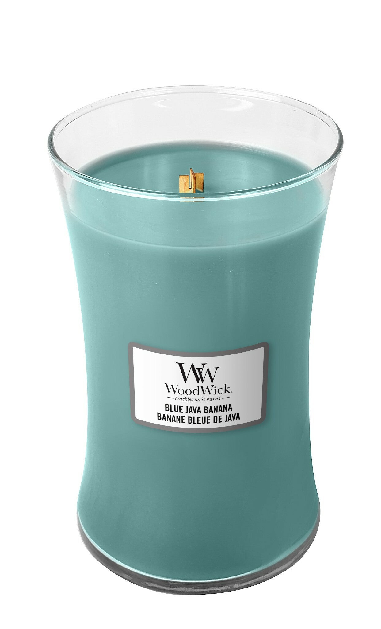 Woodwick Blue Java Banana is een tropische mix van ananas, blauwe Java Banaan, Sweet Mango en Creamy Coconut Milk.