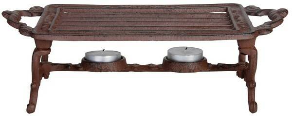 Topkwaliteit van ijzer. Kunstzinnig vintage-design. Twee waxinekaarsje zijn genoeg om eten en drinken uren warm te houden. Deze gietijzeren warmhouder houdt theepotten, pannen en potten urenlang warm en ziet er tegelijkertijd betoverend uit. Het klassieke vintage ontwerp met zijn artistieke details is een hoogwaardige decoratie voor elke tafel. Het grote rooster biedt voldoende plek aan verschillende pannen. Natuurlijk kunt u de warmer ook gebruiken als een verlengstuk van een fondueset. Het is immers even mooi als veelzijdig.