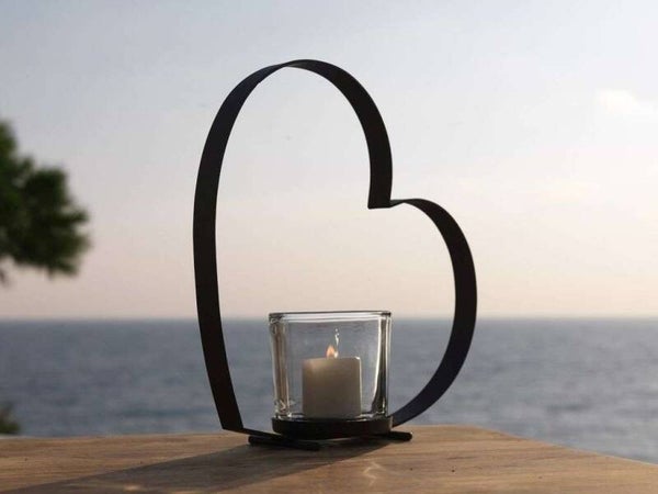 Decoratieve harten van metaal met een klein windlichtje in een gebogen look. Edel, modern design, perfect in elke sfeer.