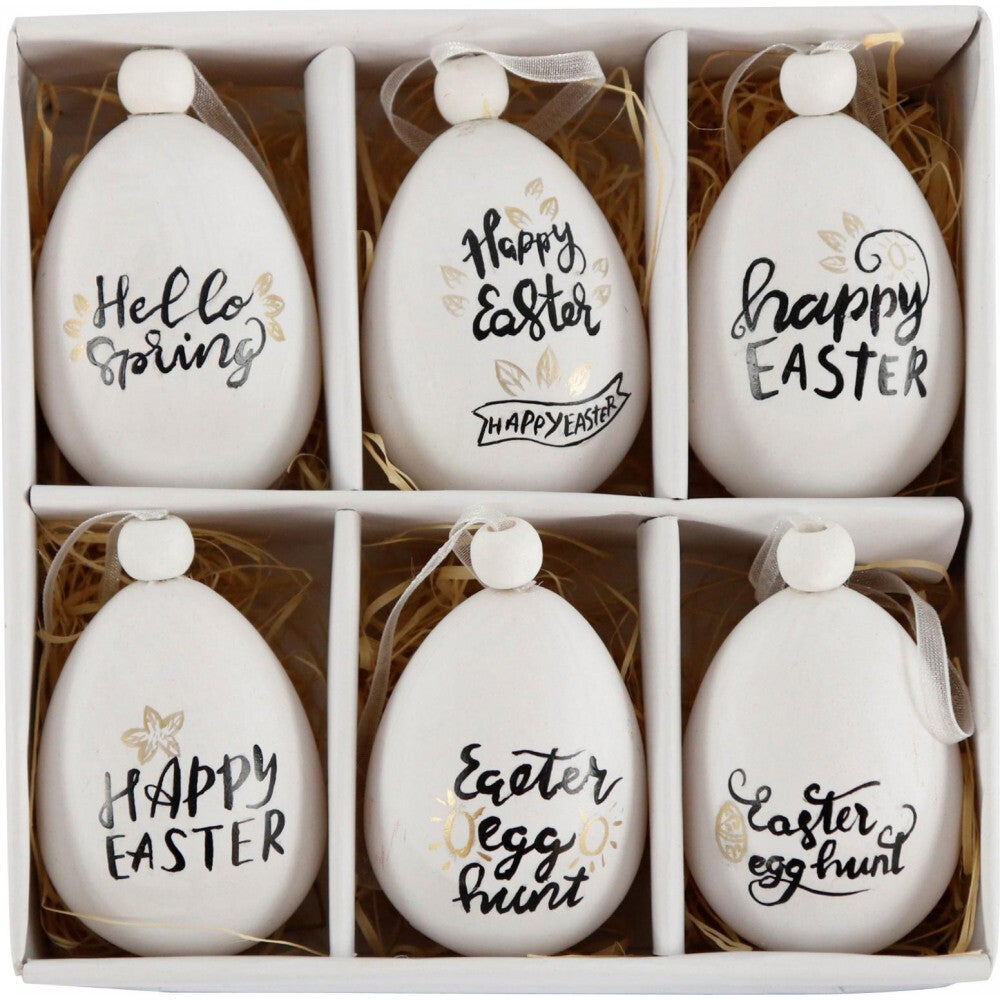 Decoratieve EIEREN IN DOOS "teks" Set / 6
