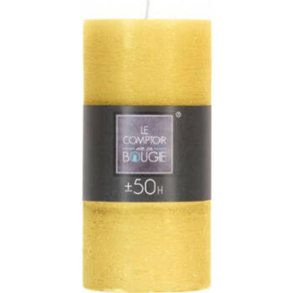Gele rustieke ronde kaars - 6,8cm x h14 cm - 50 Branduur