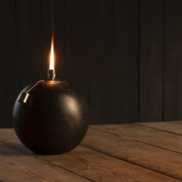 - Mooie bolvormige olielamp in een zware kwaliteit met sfeer garantie. Geef hem buiten een mooi plaatsje en sfeer is gegarandeerd. De olielamp heeft een diameter van 16cm.