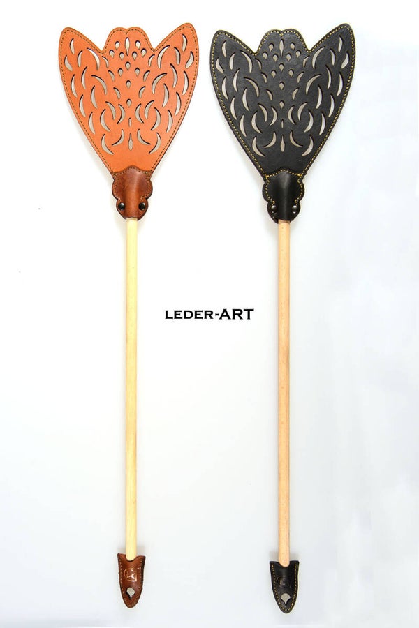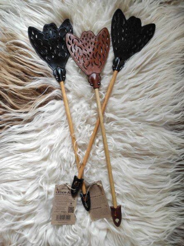 De stoere lederen vliegenmeppers worden met de hand gelaserd, gestikt, vernist en afgewerkt in het atelier van Karien in Koekelare. Gemaakt van natuurlijk gelooid tuigleder, ogen ze mooi in ieder interieur. Deze hoef je dus niet te verstoppen, in tegendeel!