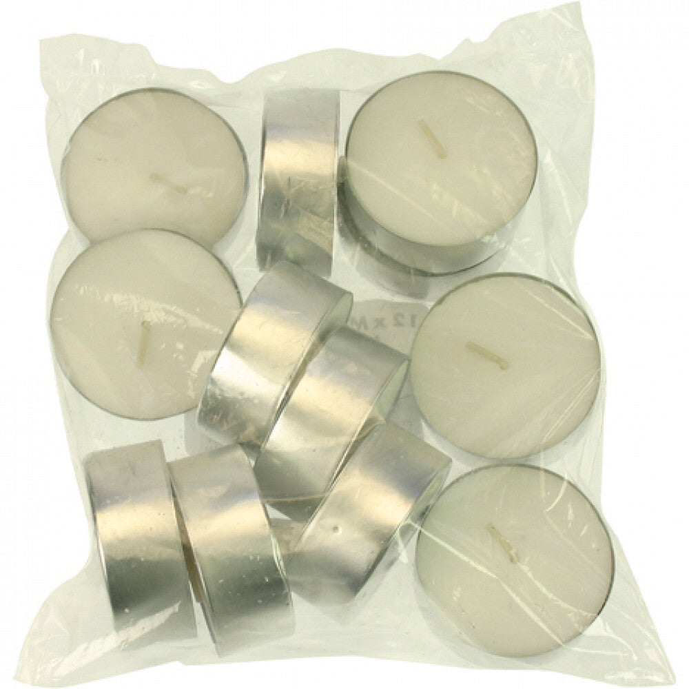 Waxinelichtjes Maxi 12er 5,5x2cm in de zak Branduur gedurende ongeveer 10 uur.