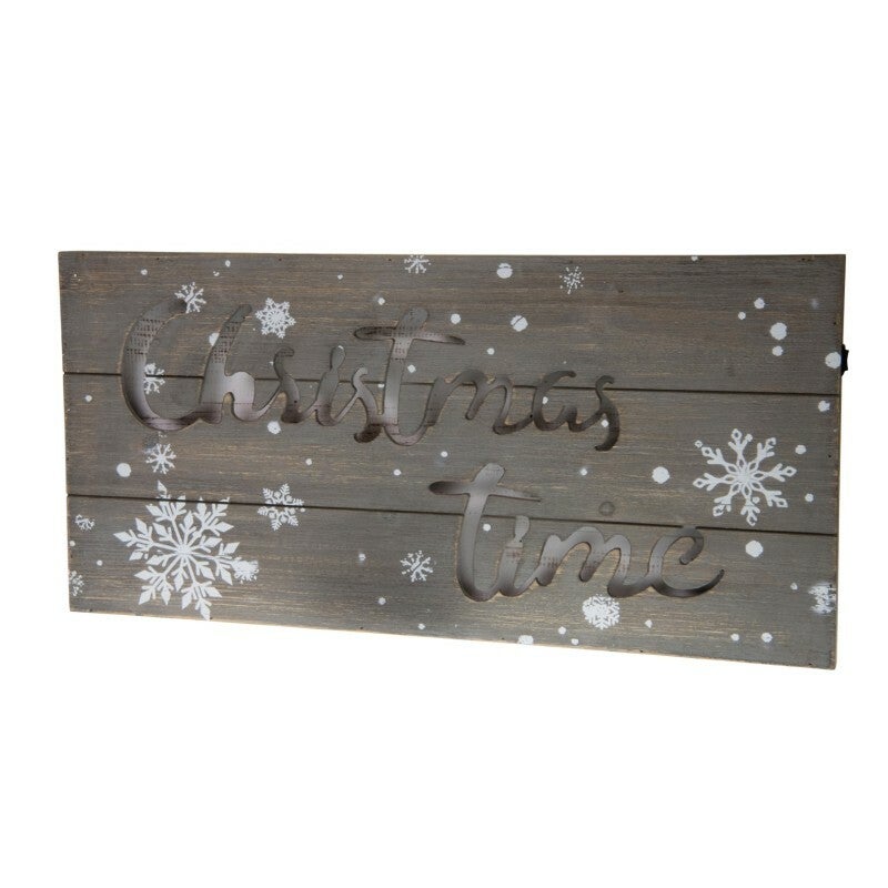 Houten paneel "Christmas Time" met led - Hoogte 28 cm - lengte 58 cm - dikte 2,5 cm
