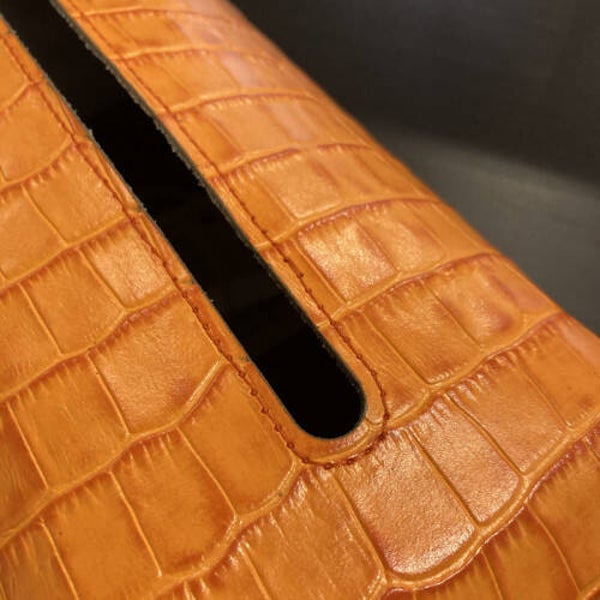 Voor wie van kleur houdt, zal het croco oranje rundsleder weten te appreciëren.