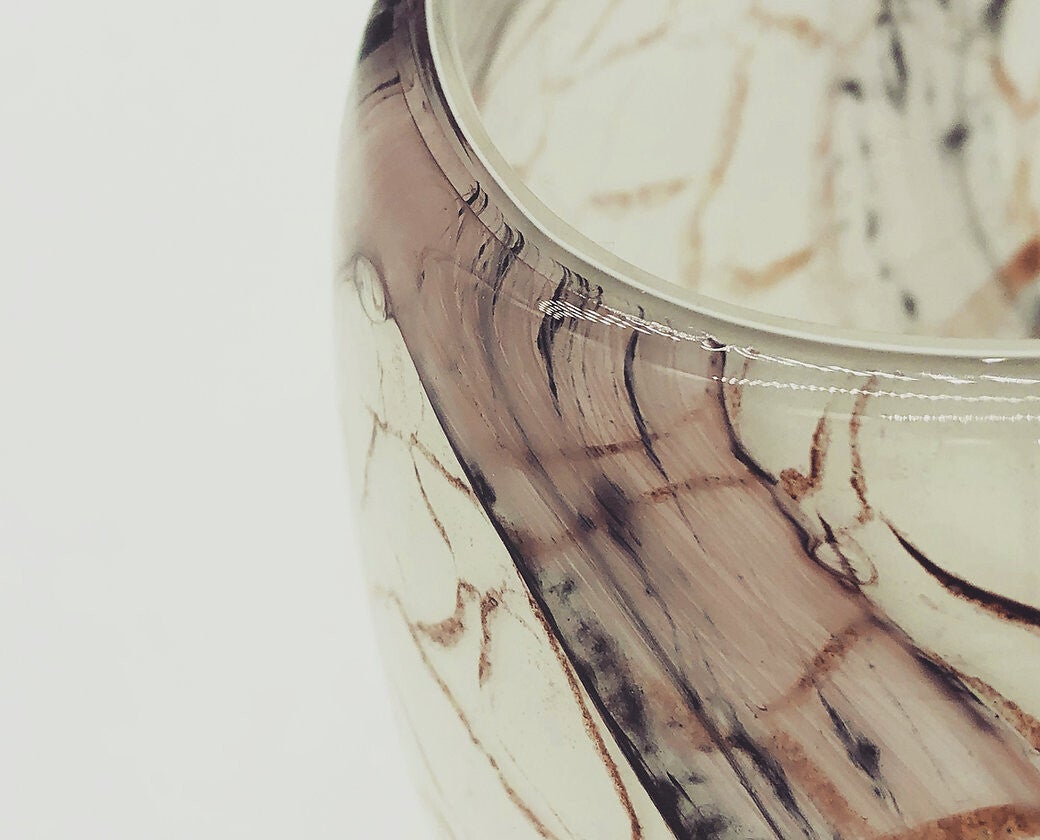 Unieke mondgeblazen vazen met roze golven en een trendy marmer effect.