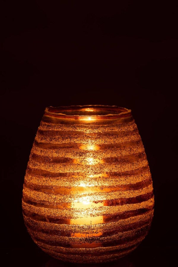J-Line Theelichthouder Streep Rond Glas Bruin Large - (20x20x23cm)