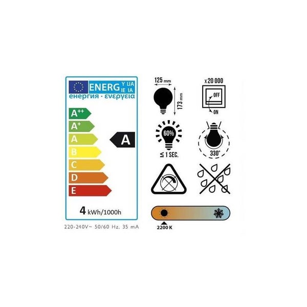 Led Lamp - g125 - e27 - happy amber 4w - Grootte (cm): 17,3x12,5x12,5 - Materialen: glas - glas