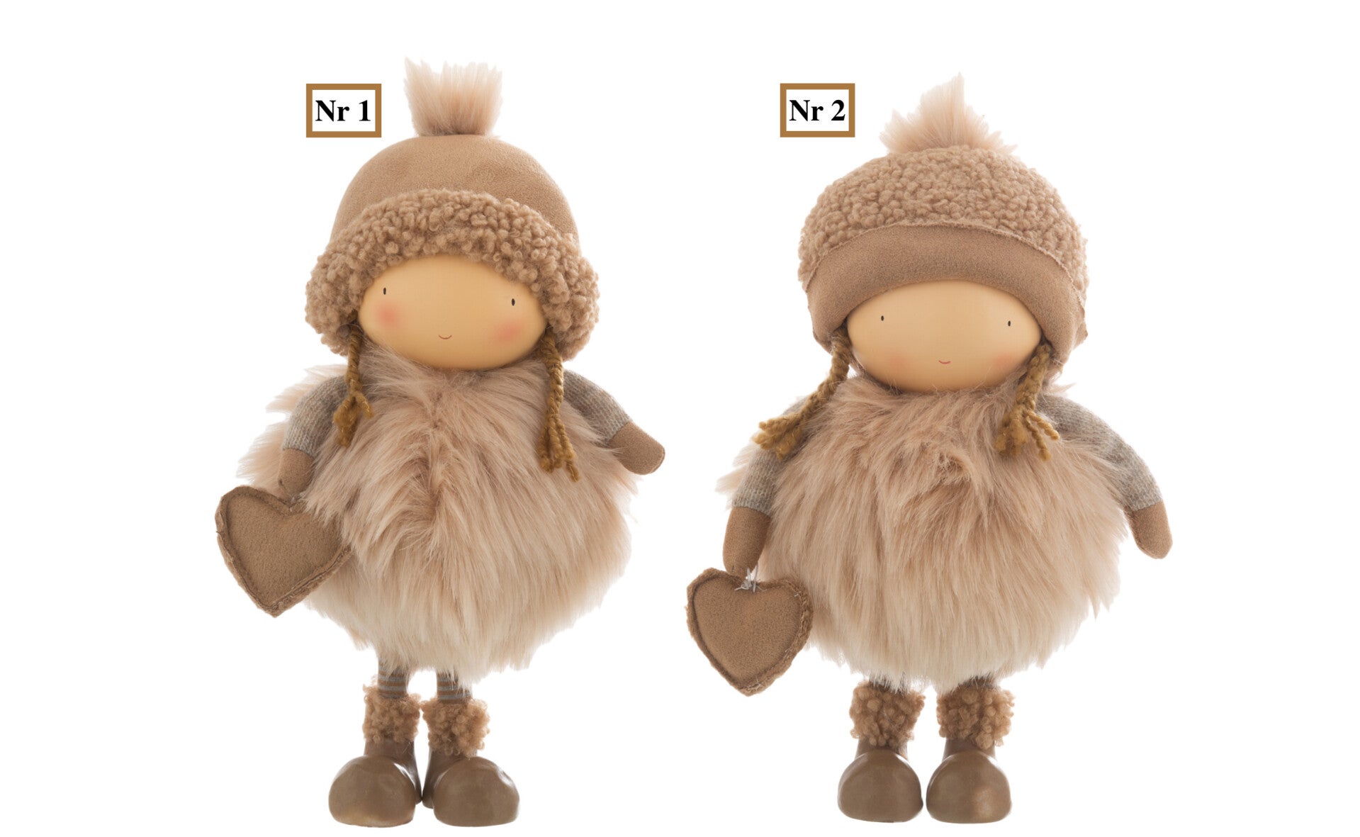 J-Line Meisje Winter Hart Poly Beige Large L20xB15xH34 cm - Jline-by-Jolipa / 2 stuks