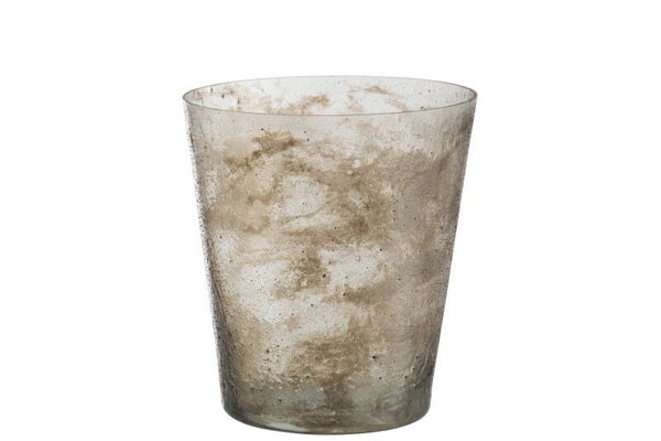 J-Line Grote Zandkleurige Ronde Glazen VAAS RUW CONISCH Glas Transparant-Zand Large L20xB20xH22 cm
