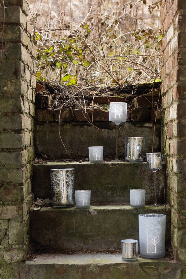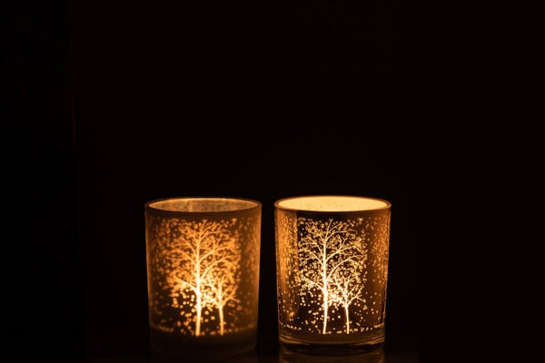 J-Line Windlicht Boom Glas Wit/Zilver Medium Assortiment Van 2