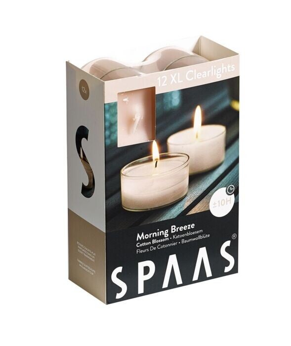 Ervaar de frisse, koele, reine geur van de ochtendbries met de Morning Breeze. De verfijnde geur van natuurlijke aspecten met elegante bloemachtige toetsen zorgen voor een verfrissend en kalmerend effect. Ontwaak in een rustgevende omgeving met de Morning Breeze.? De 12 XL geurtheelichtjes in heldere cups geven een heel chic effect. Je ziet de paraffine langzaam veranderen in een heldere vloeistof. Het licht van het kaarsje schittert in de vloeistof en zorgt voor een kleurrijke gloed die heel anders is dan bij een waxinelicht in aluminium cup. De parfums zijn gebaseerd op geuren uit de natuur en zijn heel uiteenlopend. De Clearlights zijn verpakt per 12 stuks en brengen je ongeveer 10 uren brandplezier