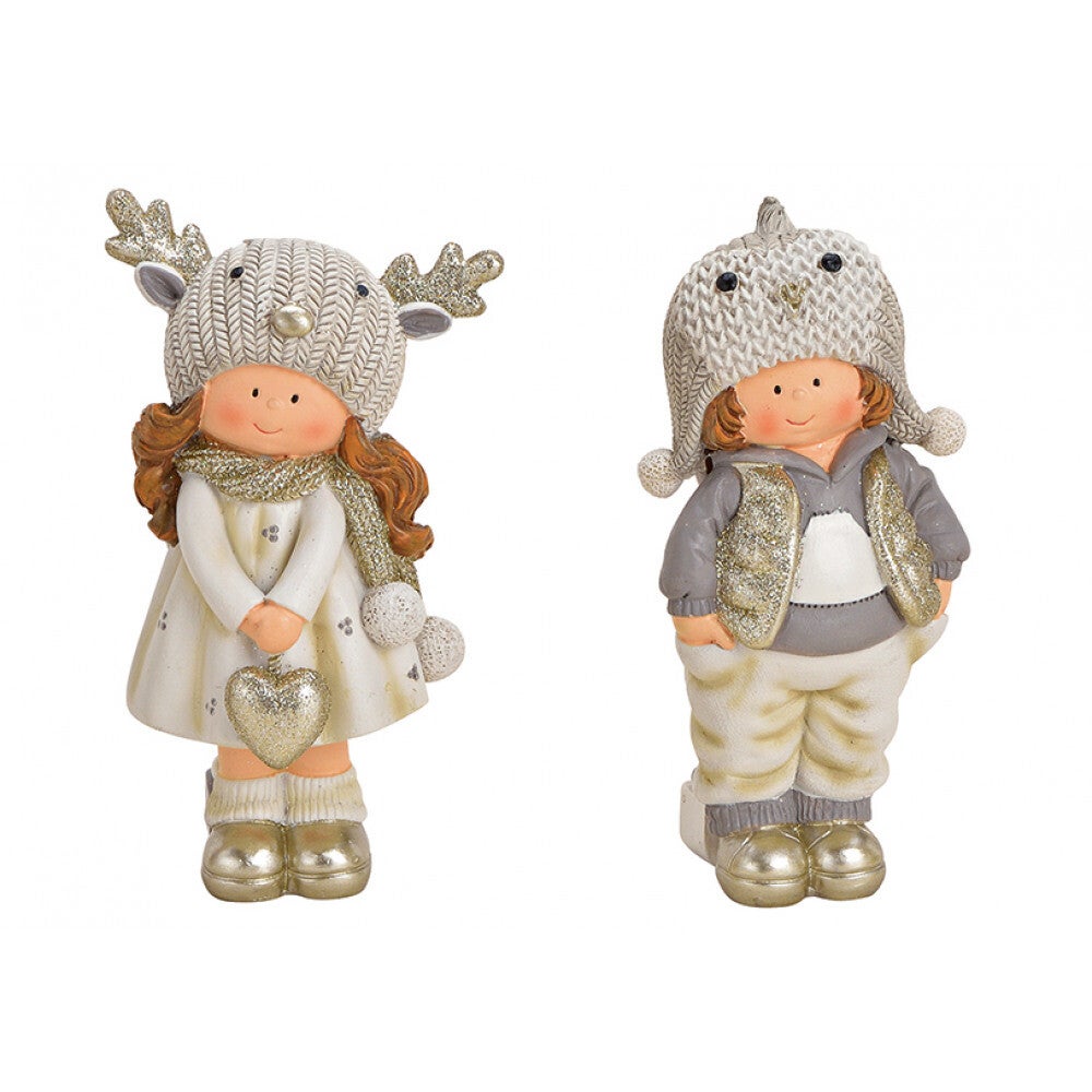 Decoratieve Winterkinderen van poly wit, grijs - koppel van 2 - koppel winterkinderen