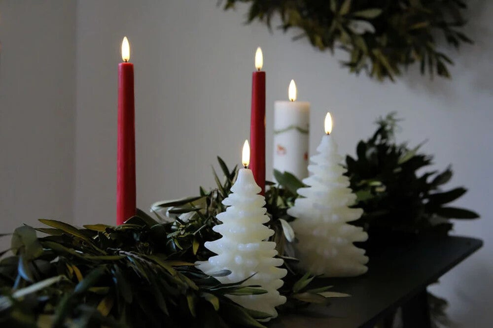 Klassieke LED-kaars gemaakt van handgemaakte pure paraffinewas met Uyuni's levensechte, gepatenteerde 3D-vlam. Je kunt een afstandsbediening kopen die de 3 lichtniveaus kan regelen en een timer kan instellen voor 4, 6, 8 en 10 uur. De lamp werkt op batterijen (niet meegeleverd). Deze LED-kaarsen behoren tot de mooiste op de markt!