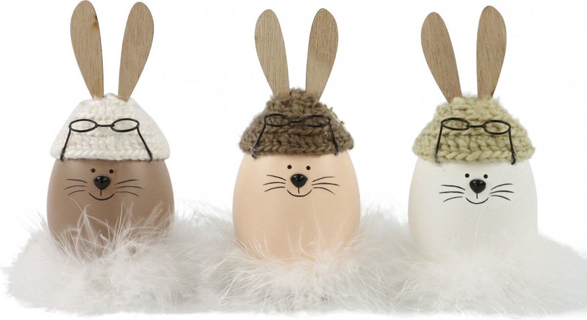 Decoratieve paaseieren - Paas versiering - paasei Konijntjes ø9x17cm - 3 stuks